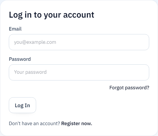 - Use Account in the top bar → on /account open Log in to your account and enter email and password. Use Forgot password? if you need a reset.