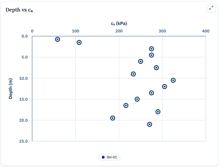 After each tool runs its calculations, it draws depth-based plots—typically on the Soil Profile Plot tab. These charts are among the first outputs reviewed in AI-assisted interpretation.